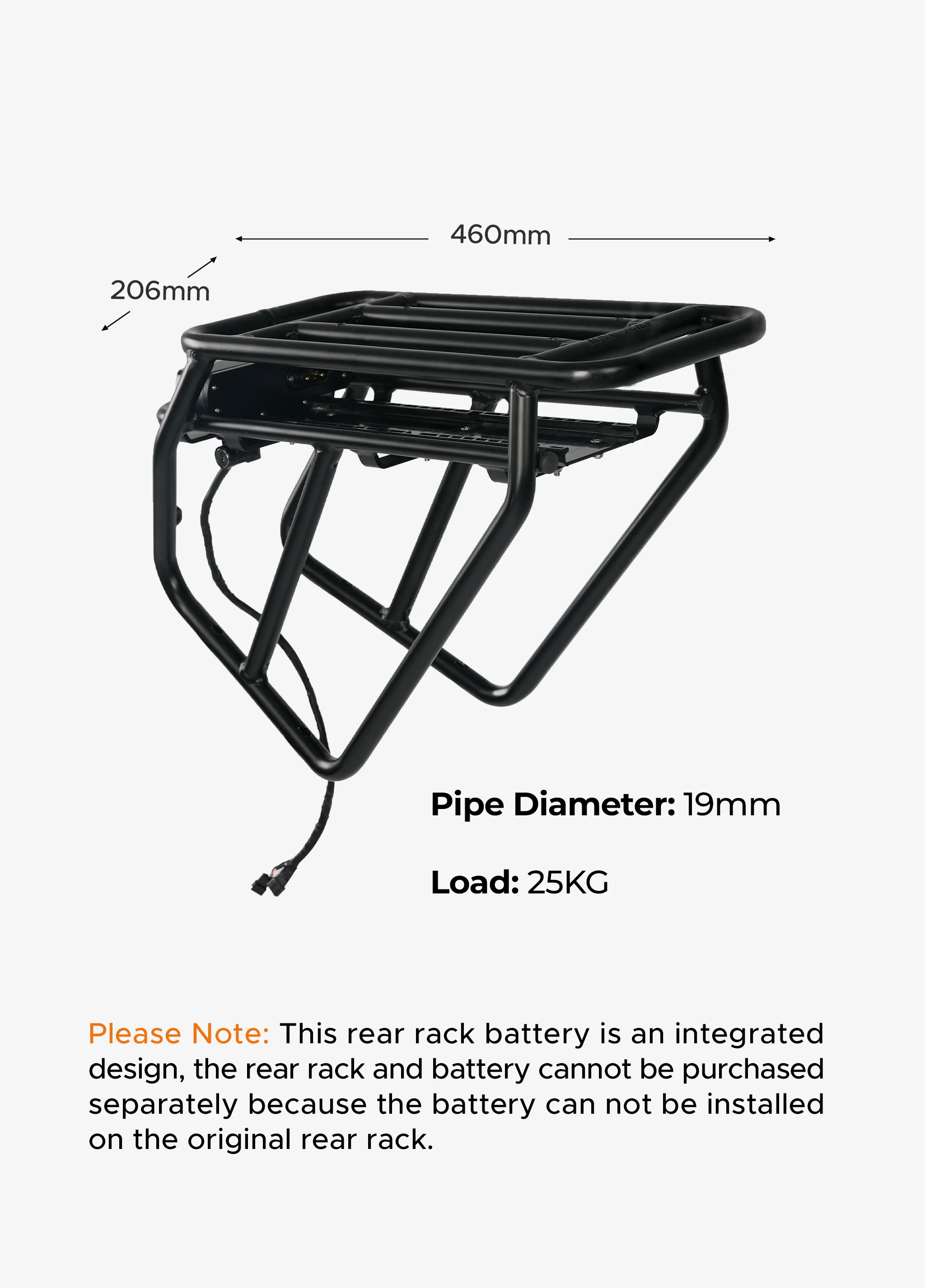 The Engwe UK site offers a rear rack with a 13Ah lithium-ion battery for Engine Pro and Engine X models, priced at £399. The battery provides up to 35 km in electric mode and 87 km in PAS mode. Charging takes about 6 hours. The package includes installation instructions, necessary tools, and additional accessories. Customer reviews praise the product's quality and ease of installation.